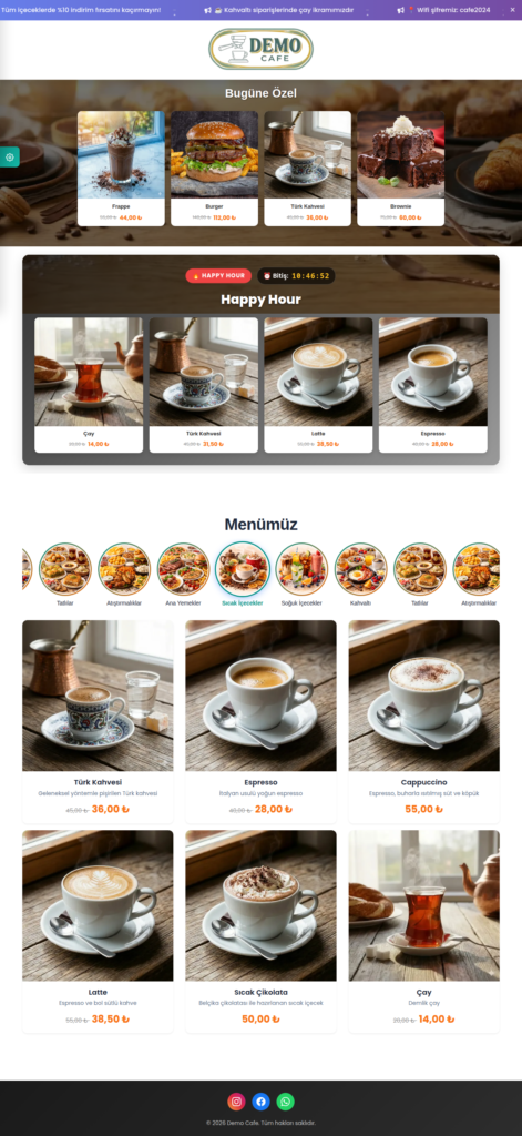 Menünüz, işletmenizin logosuna, renklerine ve konseptine uygun şekilde tasarlanır.